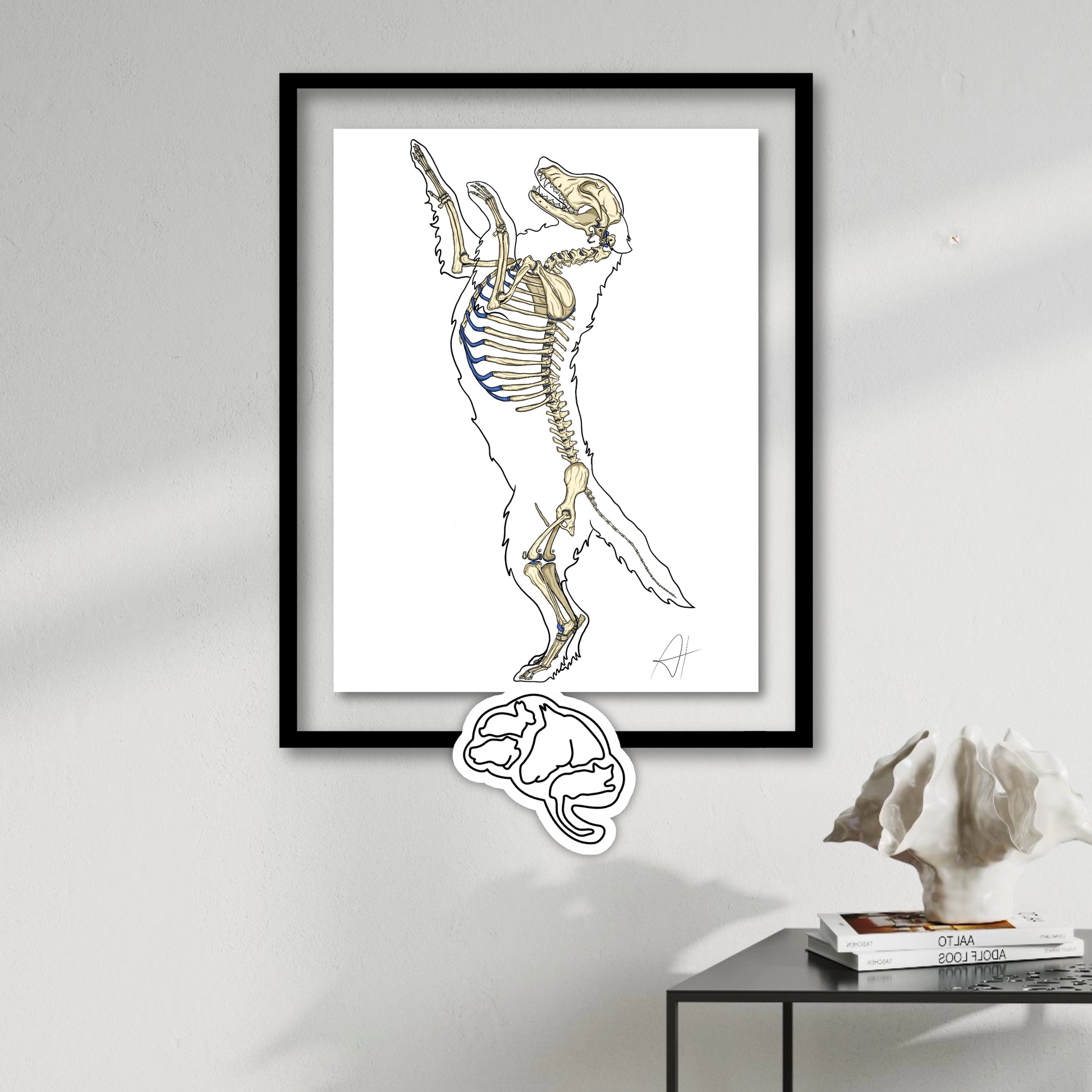 Cette planche anatomique du squelette du chien vous aidera dans vos révisions et donnera un style inégalable à votre intérieur, qu’il s’agisse d’une chambre d’étudiant, d’un cabinet vétérinaire/ostéopathe animalier ou le salon d’un passionné d’animaux !